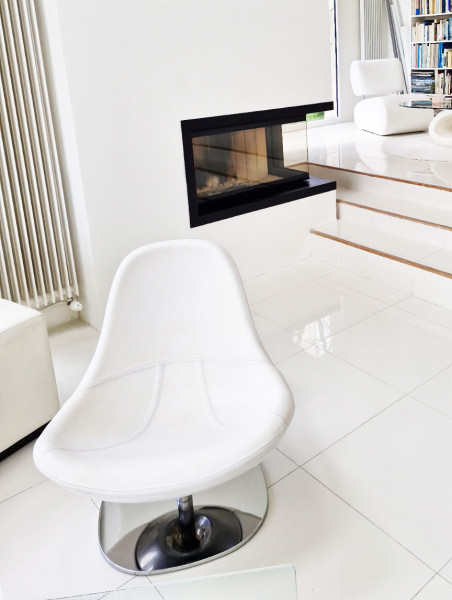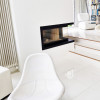 Réalisation de cheminée moderne avec foyer fermé au mois de mars 2025.
